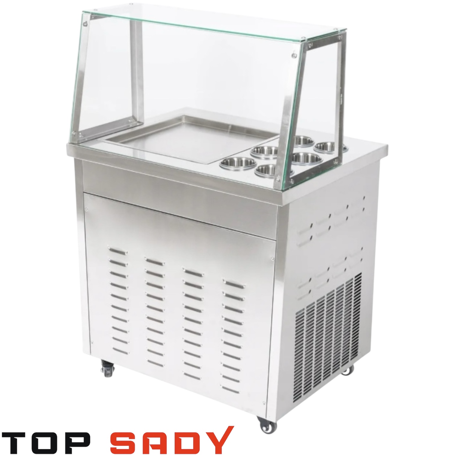 Model 2B2 je profesionální rolovací (thai) zmrzlinový stroj s horní skleněnou vitrínou a rozšířeným prostorem pro ingredience. Umožňuje atraktivní přípravu zmrzliny přímo před zákazníky, což zvyšuje zážitek z nákupu i impulzní prodej.